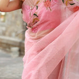 BABY PINK ORGANZA SAREE with Intricate Embroidery