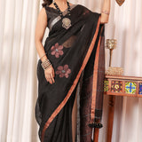 Black Pure Linen Zari Work Saree