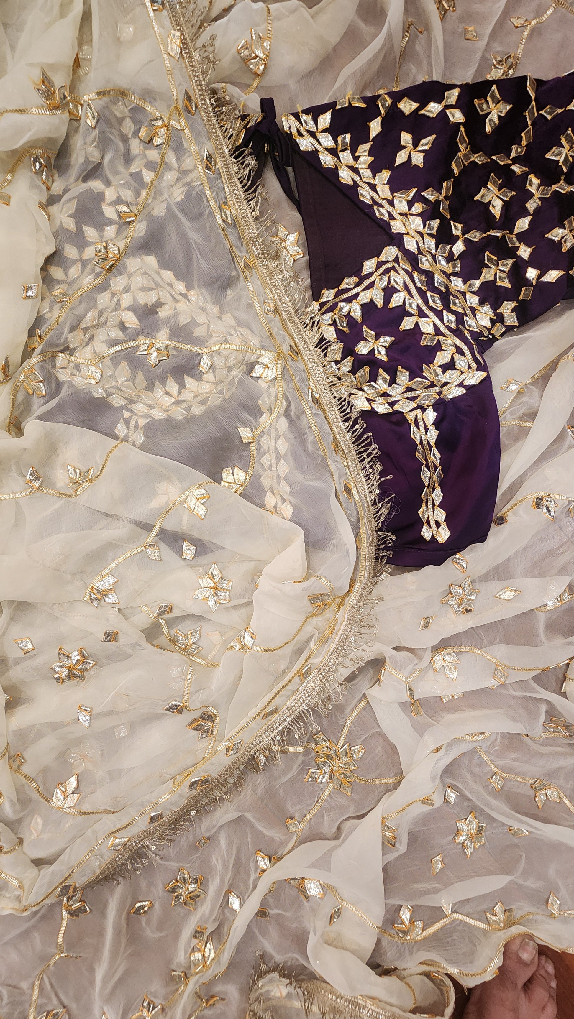 Pure Chiffon white saree with intricate Work with Gota Patti Lace